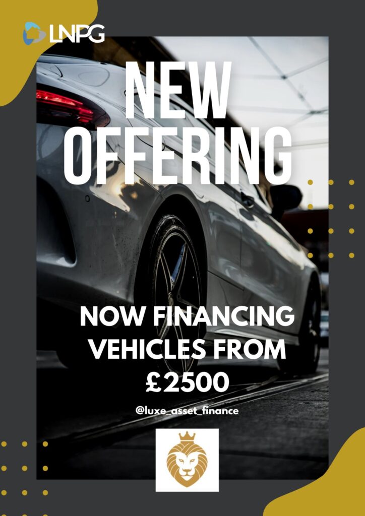 Now offering funding from £2,500, Luxe focus on finding the right deal for you, including for those with less-than-perfect credit.
