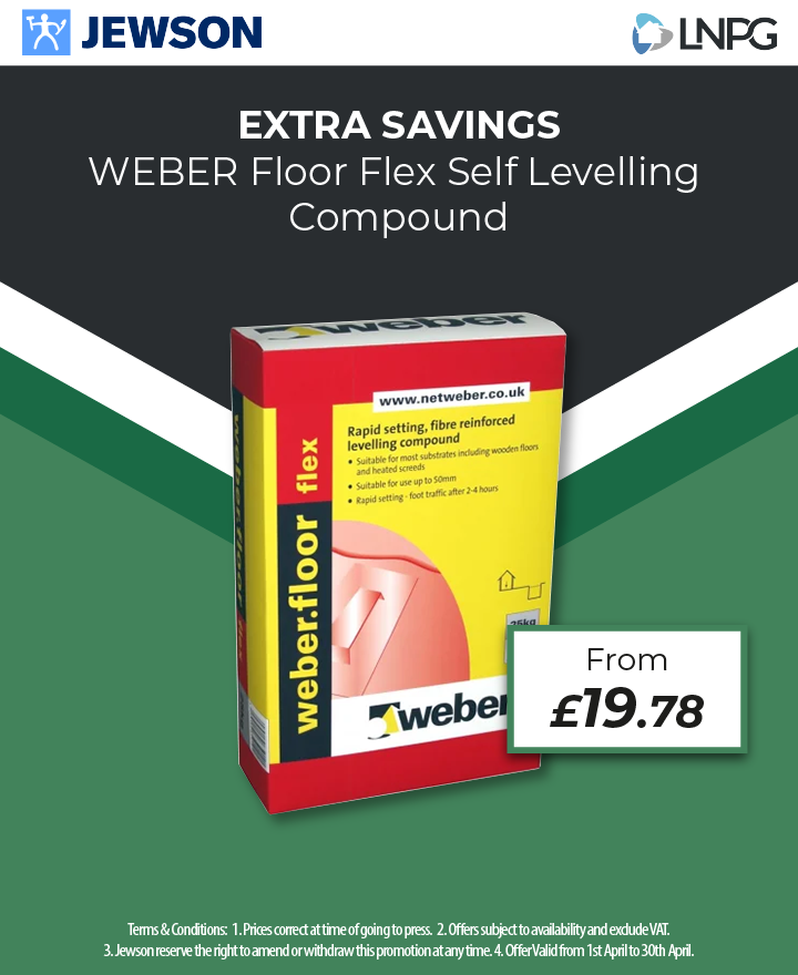 Offering extra savings on the Weber Floor Flex Self Levelling Compound, this quick drying floor screed gives extra flexibility for use on most interior floor substrates.